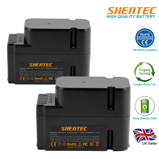 SHENTEC PLG 2 Pack 3.0AH 28V Li-ion Battery For Worx WG790E WG754E WG794E WG755E WA3225 WA3565