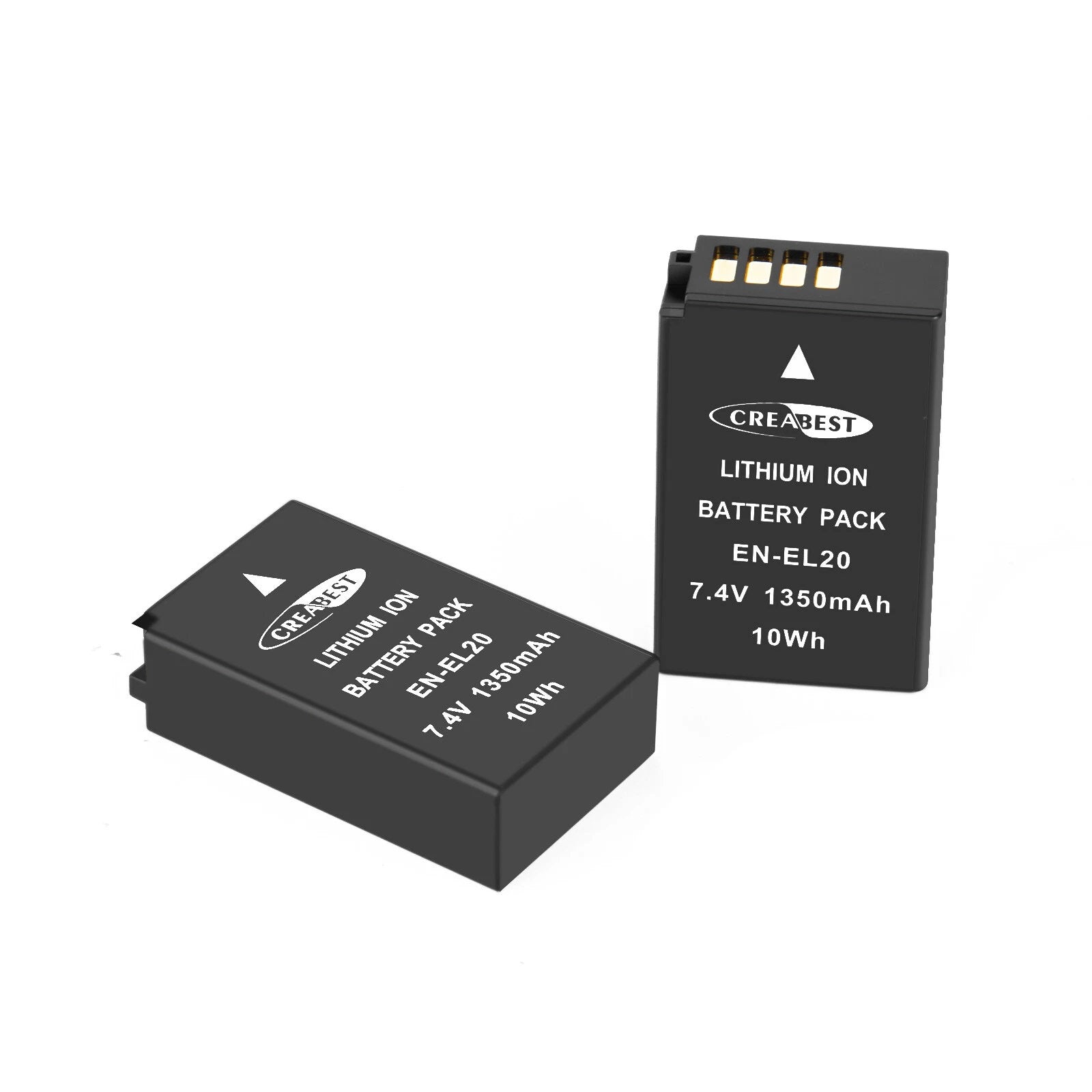 • 2 Fully Compatible Extra Batteries: Two replacement batteries with capacity of 7.4V 1350mAh. ultra-high capacity replacement battery for Nikon EN-EL20 EN-EL20a . 100% compatible in replacing your original battery