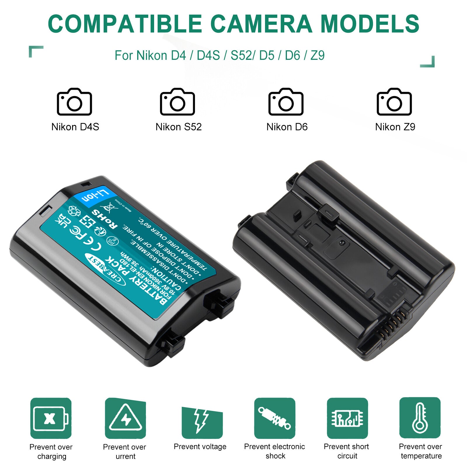 - Replace Battery: Nikon ЕN-ЕL18,ЕN-ЕL-18А,ЕN-ЕL-18В,ЕN-ЕL-18С