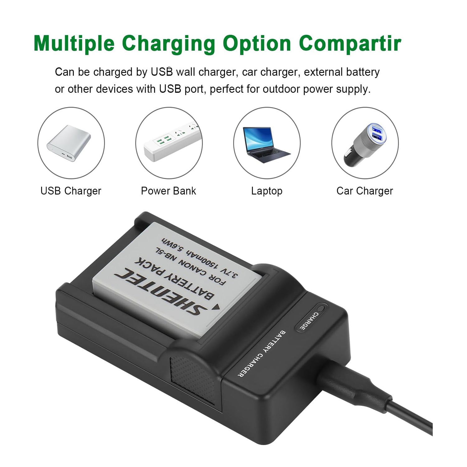 • Compatible with:Canon NB-5L battery; Canon Powershot S100, S110, SD700 IS, SD790 IS, SD800 IS, SD850 IS, SD870 IS, SD880 IS, SD890 IS, SD900 IS, SD950 IS, SD970 IS, SD970 IS, SD970 IS, SD970 IS, SD970 9990 I9S, SX200 IS, SX210 IS, SX220 IS, SX230 HS Camera Batteries;