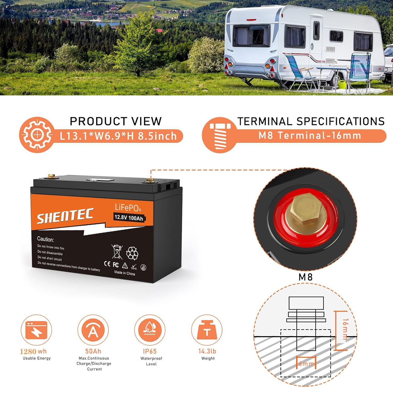 Compared to lead-acid batteries, shentec 12.8V 100Ah LiFePO4 batteries have many advantages such as low weight and high charge-discharge efficiency. The most important thing is that it has a longer service life, up to more than 4000 times, which provides strong reliability and continuity for your work. Built-in BMS and multiple protection devices are safer than lead-acid batteries, which can protect your battery from overcharging and discharging, over-current, short circuit, etc. without being damaged, and extend the service life. Lithium-ion batteries are safe and non-toxic, contain no harmful substances and do not threaten the environment and your health.